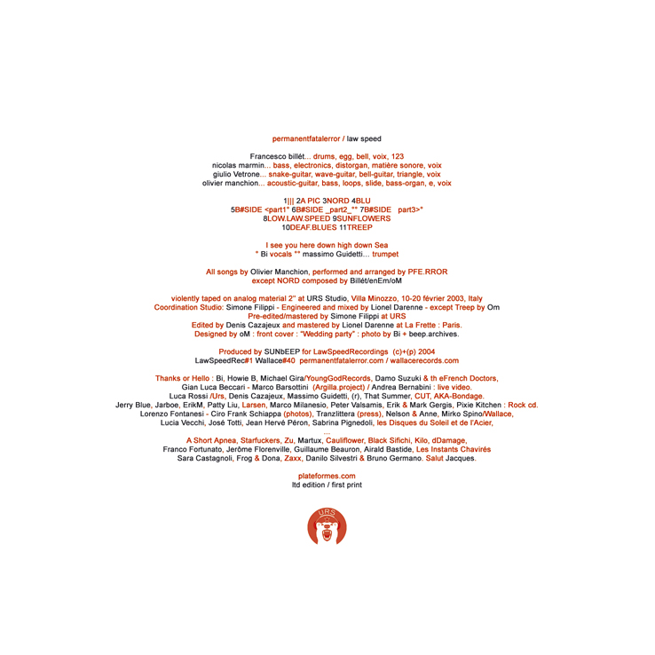 IL MANIFESTO: “Permanent Fatal Error è il nuovo gruppo di Olivier Manchion, ex Ulan Bator. Di quel gruppo, qui, si conserva il marchio di musica scura e una potenza che pero’ viene maggiormente addomesticata. Undici tracce, solo strumentali e dai titoli laconici. Al centro della musica c’e’ il pulsare cardiaco del basso: caldo e pieno di frequenze che si dispiegano per intero, senza tagli. Tutto intorno lo spazio: ora fratturato, ora diluito oppure organizzato, ora silenzioso, ora rumoroso. Ci sono trombe jazz, loop di chitarre reiterati all’infinito, suoni d’ambiente e un senso magmatico del tessuto musicale. Lavoro tanto fisico quanto cerebrale, tra ipnotismi e scosse telluriche. Ad ogni modo, sembra suonare sottopelle. Somiglianze e richiami vanno a gruppi come GodspeedYou! BlackEmperor o agli Swans e Michael Gira”.